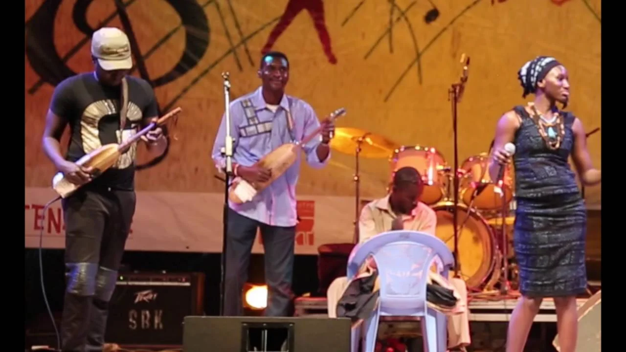 (English): The daughter of Fousseyni Kouyate - brother of n'goni virtuoso, Bassekou Kouyate - Kankou is rapidly gaining recognition for her warm and sweet voice, which is alto as origin, but which bends both high and low. Curiously she takes Malian standards and turn them into her own, while she also sings the repertoire of the jeli or griotte caste, which she is a proud member of. With the family's Gambari Band, which includes the young n'goni virtuoso, Mamadou "Barou" Kouyate, she can be seen at Bamako's Mistral Hotel. Already known for her work with Damon Albarn, she has the voice and stage manner, which soon will elevate her out on the international scenes.